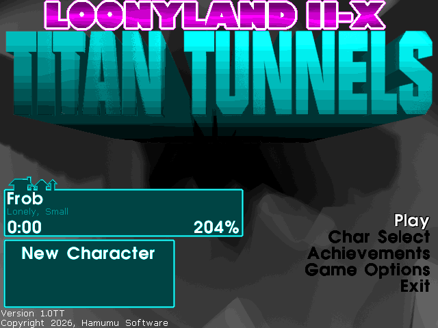 So that's the core idea of the Village. I think it adds a fun element of freedom that other games don't have, though I obviously still have to determine which things are on the village-level and which are on the player-level, so you don't have full control over what resets between characters. There are also a few things that are game-level - you earn achievements game-wide, and just like in Loonyland 2, you earn new Modifiers by earning Achievements. You may also earn playable classes the same way, I'm not sure yet.